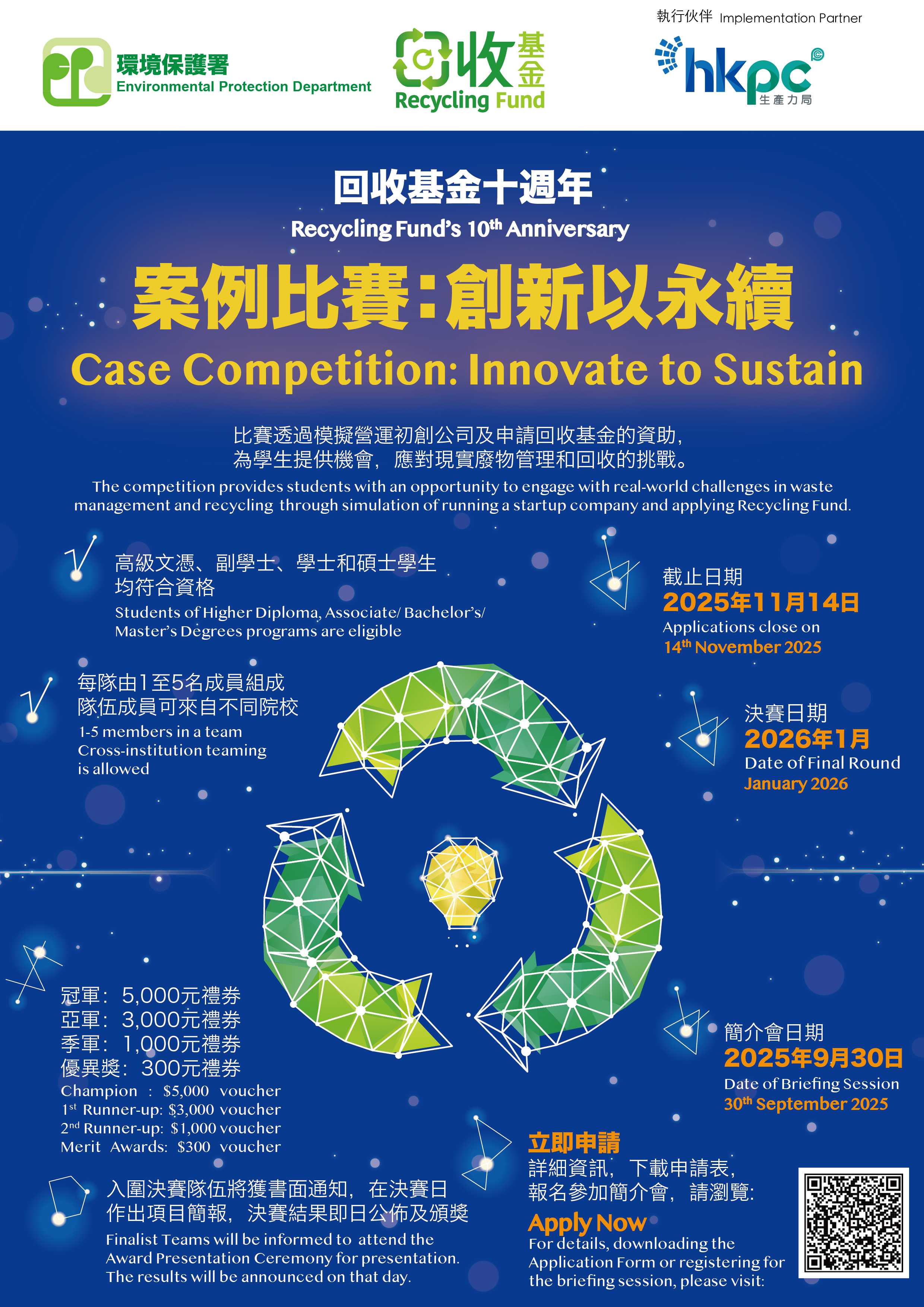 詳情請點擊連結 https://www.recyclingfund.hk/zh-hk/cid146/ 或參予「簡介會」了解更多比賽內容、評分準則等。